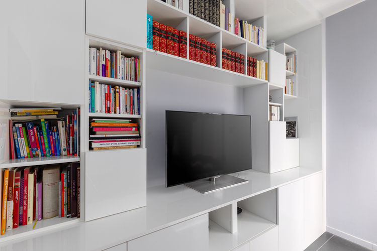 L’ensemble a été pensé pour offrir une ergonomie optimale, en conciliant harmonieusement zones de stockage, espace multimédia et circulation fluide dans la pièce. Chaque élément a été conçu afin de valoriser le volume existant, optimiser chaque mètre carré et proposer un mobilier sur mesure esthétique, pratique et durable, parfaitement adapté à l’usage et aux besoins de l’utilisateur.